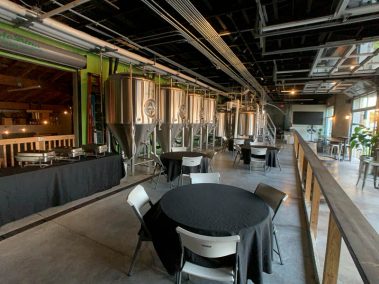 For larger parties, our staff will set up multiple tables on the production floor of the brewery for guests to sit. During your private event, the production area would be reserved for you and your guests. All of your guests will also have the same access to the taproom as any other guest. Taproom tables, however, cannot be reserved for large parties. Notably, the brewhouse production area is not under air, which means it may be warm or cold during your event. We may add fans and open/close doors for temperature control.